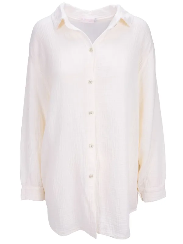 Blouse type: Klassieke blouse; Design: Gevoerde zoom/rand, Ronde zoom, Overcut schouder, Verlengd rugpand; Type sluiting: Knoopsluiting; Materiaal: Mousseline; Motief: Effen; Kraag: Kentkraag; Extra's: Op staal naden; Pasvorm: Wijde pasvorm; Armlengte: Lange mouw; Lengte: Lange pasvorm