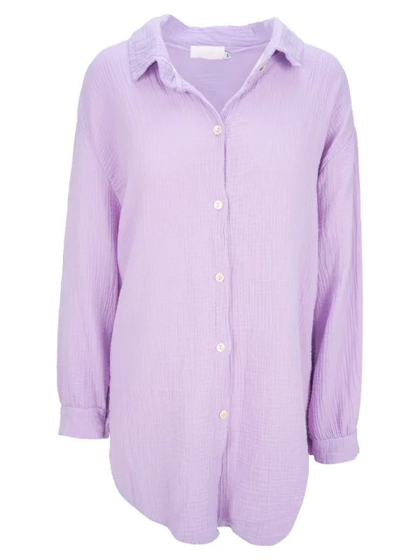 Blouse type: Klassieke blouse; Design: Knop placket; Type sluiting: Knoopsluiting; Materiaal: Mousseline; Motief: Effen; Kraag: Kentkraag; Extra's: Op staal naden; Pasvorm: Wijde pasvorm; Armlengte: Lange mouw; Lengte: Lange pasvorm