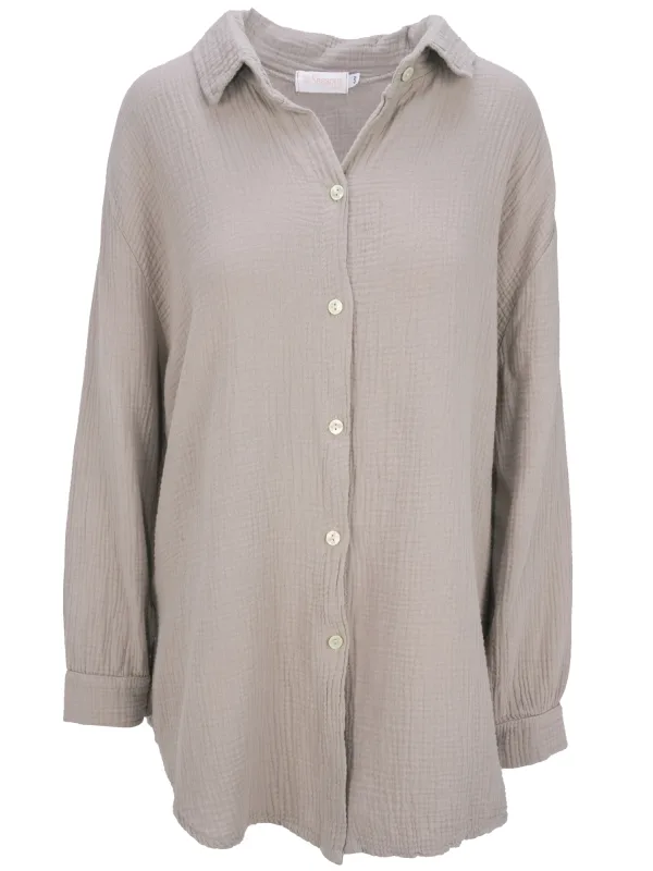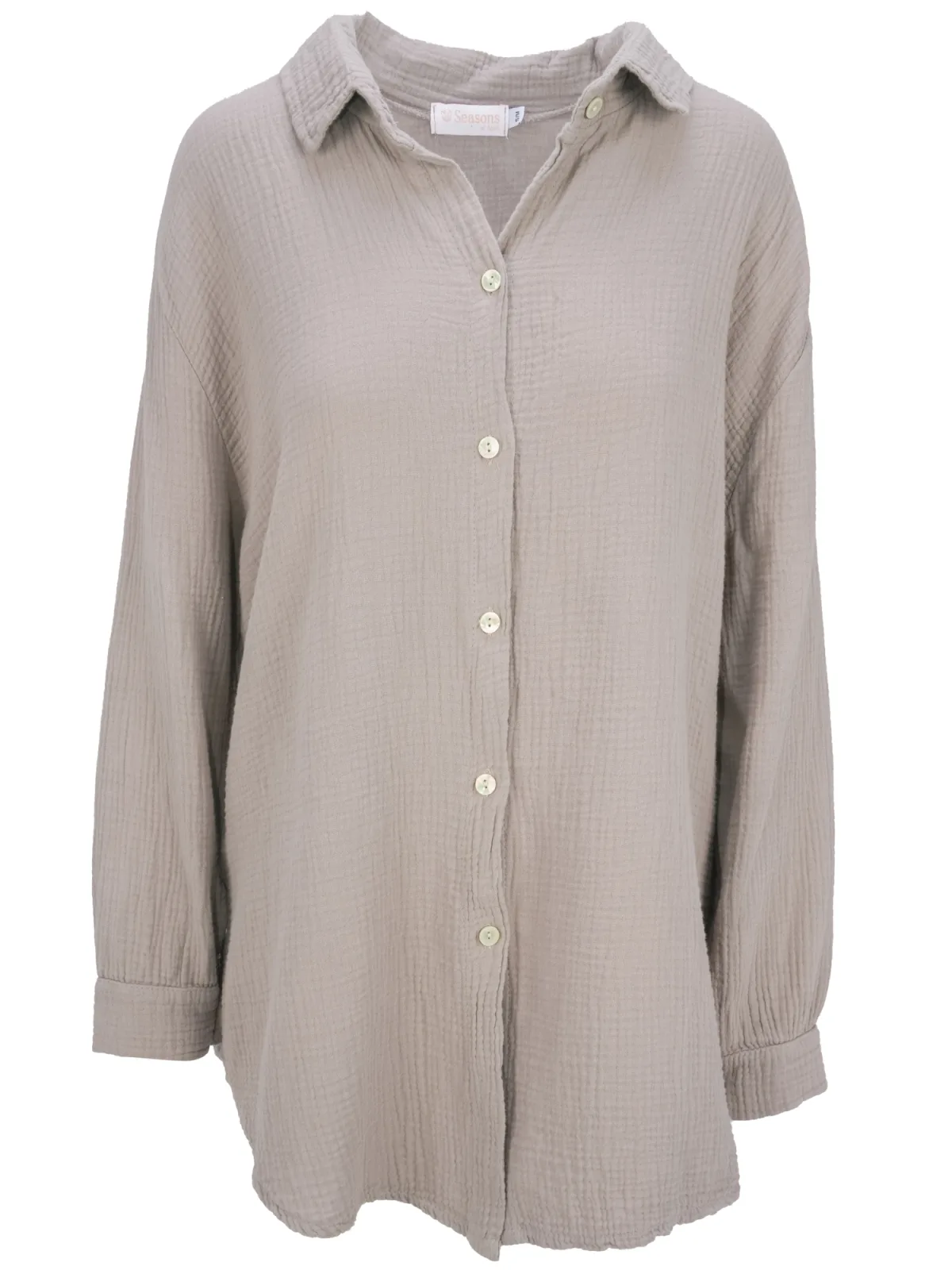Blouse type: Klassieke blouse; Design: Overcut schouder; Type sluiting: Knoopsluiting; Materiaal: Mousseline; Motief: Effen; Kraag: Kentkraag; Extra's: Lichte stof; Pasvorm: Wijde pasvorm; Armlengte: Lange mouw; Lengte: Lange pasvorm