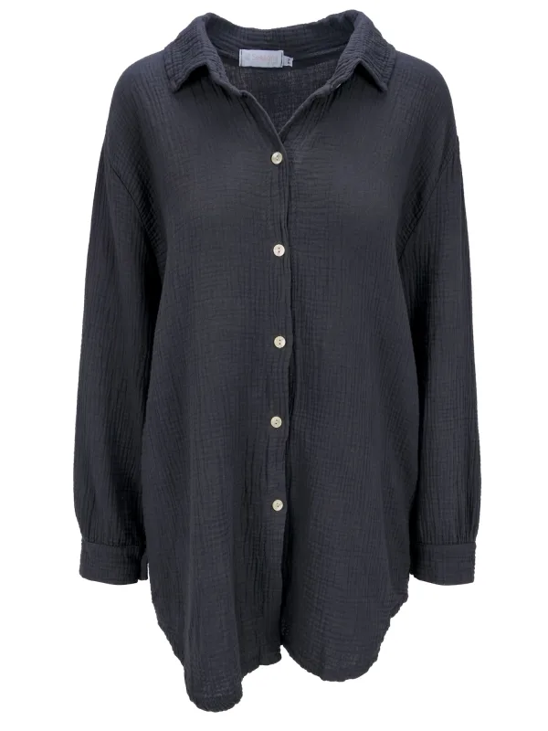 Blouse type: Klassieke blouse; Design: Knop placket, Oversized; Type sluiting: Knoopsluiting; Materiaal: Mousseline; Motief: Effen; Kraag: Kentkraag; Extra's: Op staal naden, Voelt zacht aan; Pasvorm: Wijde pasvorm; Armlengte: Lange mouw; Lengte: Lange pasvorm