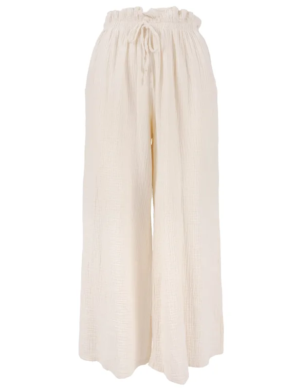 Design: Taille met trekkoord, Elastische taille/zoom, Zakken aan de zijkant; Type sluiting: Elastische band; Materiaal: Mousseline; Motief: Effen; Details: Ruches, Gedrapeerd; Extra's: Op staal naden; Lengte: Lang/maxi; Pasvorm: Wide leg; Taillehoogte: Mid waist