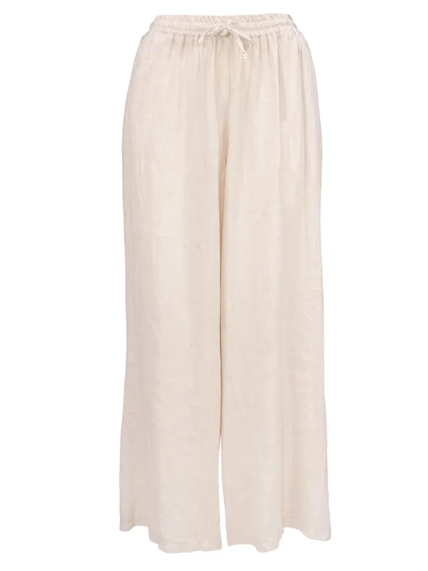 Design: Taille met trekkoord, Elastische taille/zoom; Type sluiting: Elastische band; Materiaal: Linnen; Motief: Effen; Details: Gedrapeerd; Extra's: Huidvriendelijk materiaal; Lengte: Lang/maxi; Pasvorm: Wide leg; Taillehoogte: Mid waist