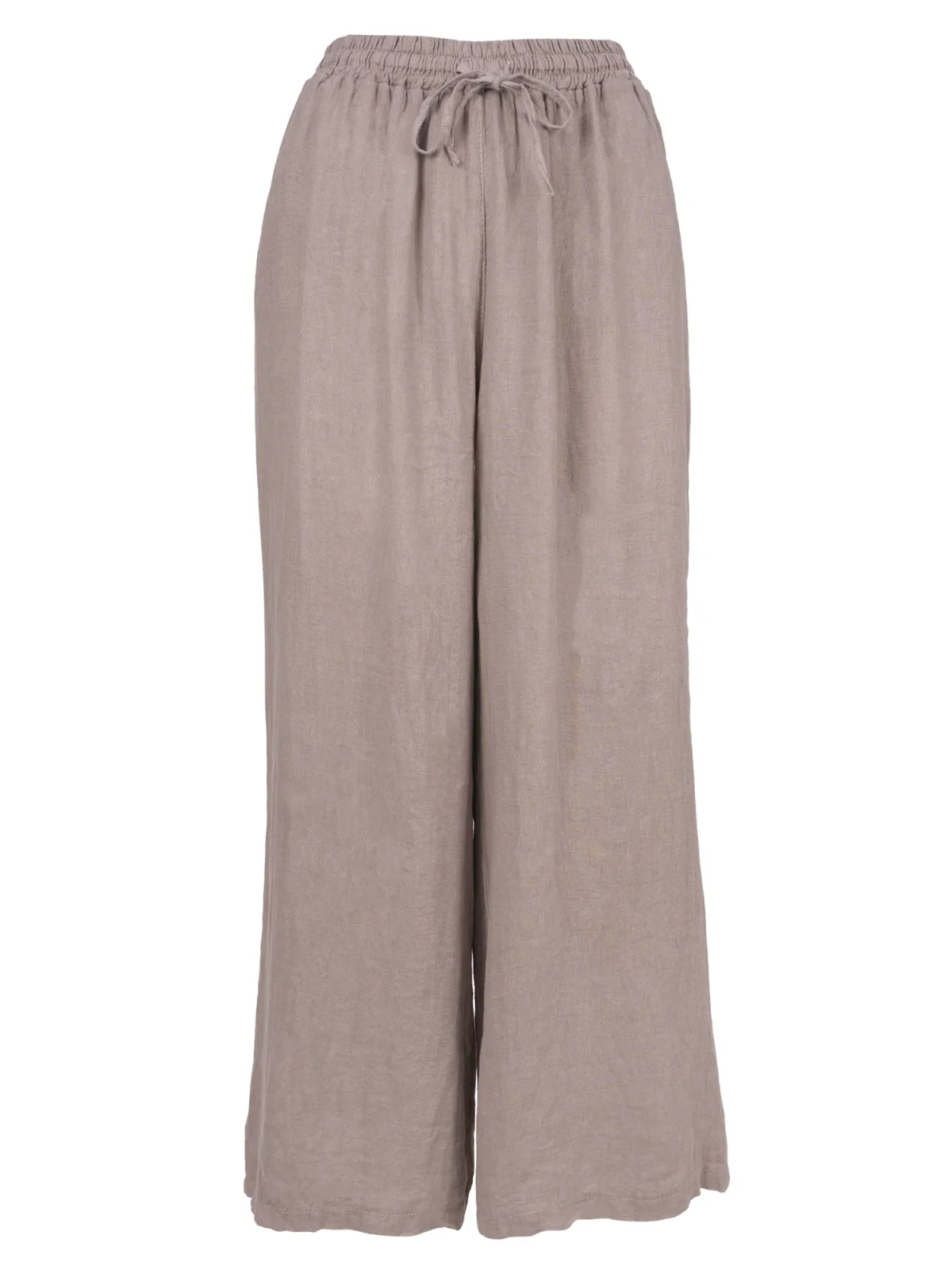 Design: Taille met trekkoord, Elastische taille/zoom; Type sluiting: Elastische band; Materiaal: Linnen; Motief: Effen; Details: Gedrapeerd; Extra's: Op staal naden, Huidvriendelijk materiaal; Lengte: Lang/maxi; Pasvorm: Wide leg; Taillehoogte: Mid waist