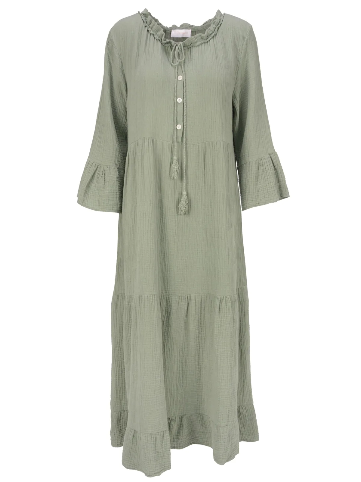 Seasons of April Jurk ‘AMARA MUSSELIN ‘ kaki