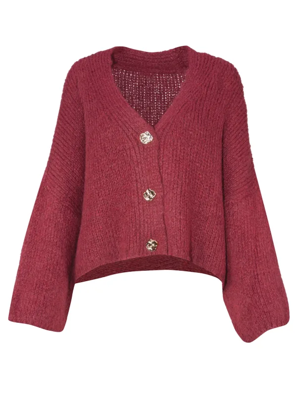 Design: Geribbelde kraag, Knop placket, Brede mouwopeningen; Type sluiting: Knoopsluiting; Materiaal: Knitwear; Halstype: V-hals; Motief: Effen; Extra's: Op staal naden; Pasvorm: Losse pasvorm; Armlengte: Lange mouw; Lengte: Normale lengte