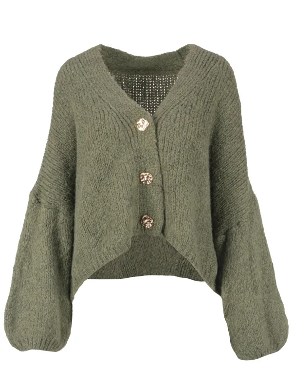 Design: Geribbelde kraag, Geribd ceintuurtje, Geribbeld gebreid, Overcut schouder, Brede mouwopeningen; Type sluiting: Knoopsluiting; Materiaal: Knitwear; Halstype: V-hals; Motief: Effen; Extra's: Op staal naden, Voelt zacht aan; Pasvorm: Losse pasvorm; Armlengte: Lange mouw; Lengte: Normale lengte