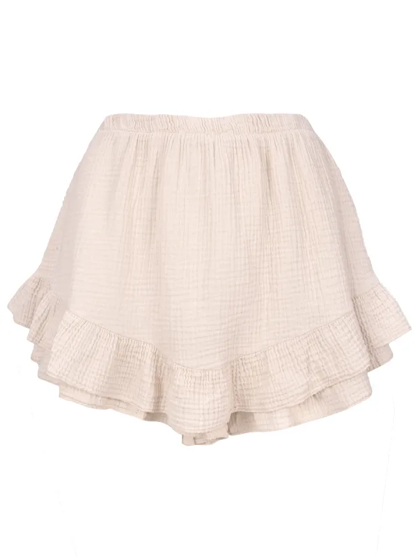 Design: Elastische inzetstukken; Type sluiting: Elastische band; Materiaal: Mousseline; Motief: Effen; Rokvorm: Minirok; Details: Ruches, Gedrapeerd; Lengte: Kort/mini; Pasvorm: Normale pasvorm