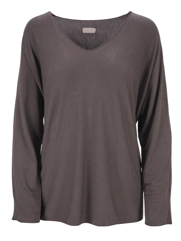 Design: Gerolde boord; Type sluiting: Slip; Materiaal: Jersey; Halstype: V-hals; Motief: Effen; Extra's: Op staal naden; Pasvorm: Losse pasvorm; Armlengte: Lange mouw; Lengte: Normale lengte