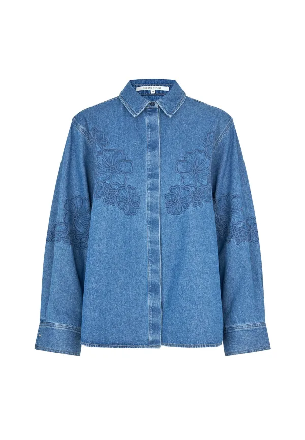SECOND FEMALE Blouse ‘Cornelia’ blauw denim Prijzen