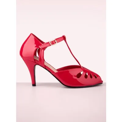Beleef je eigen sprookje met deze Secret Love Pumps! Jouw voetjes doen een dansje van vreugde zodra deze elegante lipstickrode imitatie lak lederen sandaaltjes met sierlijke uitsneden uit het doosje komen! Niet alleen een sprookje om te zien, ook om te dragen dankzij het verstelbare enkelbandje en het hakje dat precies de juiste hoogte heeft. Er is niks ''secret'' aan onze liefde voor deze beauties... ''we're in love with them and we're not afraid to show it!'' * Peeptoe * T-strap * Verstelbaar enkelbandje * Goudkleurig gespje * Imitatie (lak) leder * Zooltje met kersenprint