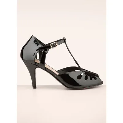 Beleef je eigen sprookje met deze Secret Love Pumps! Jouw voetjes doen een dansje van vreugde zodra deze elegante zwarte imitatie lak lederen sandaaltjes met sierlijke uitsneden uit het doosje komen! Niet alleen een sprookje om te zien, ook om te dragen dankzij het verstelbare enkelbandje en het hakje dat precies de juiste hoogte heeft. Er is niks ''secret'' aan onze liefde voor deze beauties... ''we're in love with them and we're not afraid to show it!'' * Peeptoe * T-strap * Verstelbaar enkelbandje * Goudkleurig gespje * Imitatie (lak) leder * Zool met kersenprint