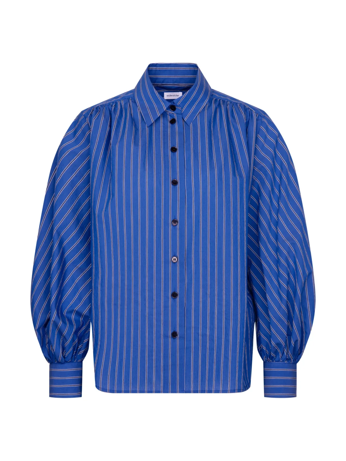 Blouse type: Klassieke blouse; Design: 1-knoops manchetten, Pofmouwen; Type sluiting: Knoopsluiting; Materiaal: Katoen; Motief: Gestreept; Kraag: Kentkraag; Details: Gedrapeerd; Extra's: All-over patroon; Pasvorm: Wijde pasvorm; Armlengte: Lange mouw; Lengte: Normale lengte