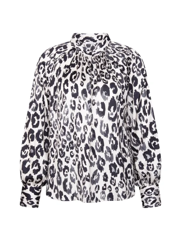 Blouse type: Klassieke blouse; Type sluiting: Drukknoop; Materiaal: Viscose; Motief: Dierenprint; Kraag: Opstaande kraag; Extra's: All-over patroon; Pasvorm: Normale pasvorm; Armlengte: Lange mouw; Lengte: Normale lengte