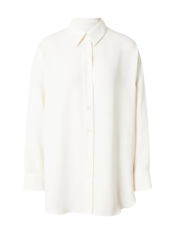 Blouse type: Klassieke blouse; Design: 2-knoops manchetten, Oversized, Rugplooi, Overcut schouder, Verlengd rugpand; Type sluiting: Knoopsluiting; Motief: Effen; Kraag: Kentkraag; Details: Plooien; Extra's: Op staal naden, Gladde stof; Pasvorm: Wijde pasvorm; Armlengte: Lange mouw; Lengte: Lange pasvorm