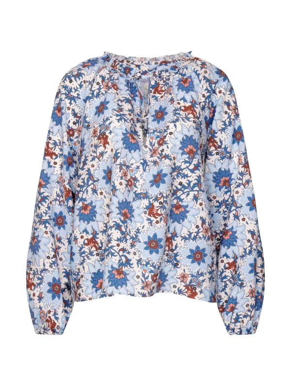 Specificaties: SEIDENSTICKER Blouse ‘Schwarze Rose’ blauw / lichtblauw / rood