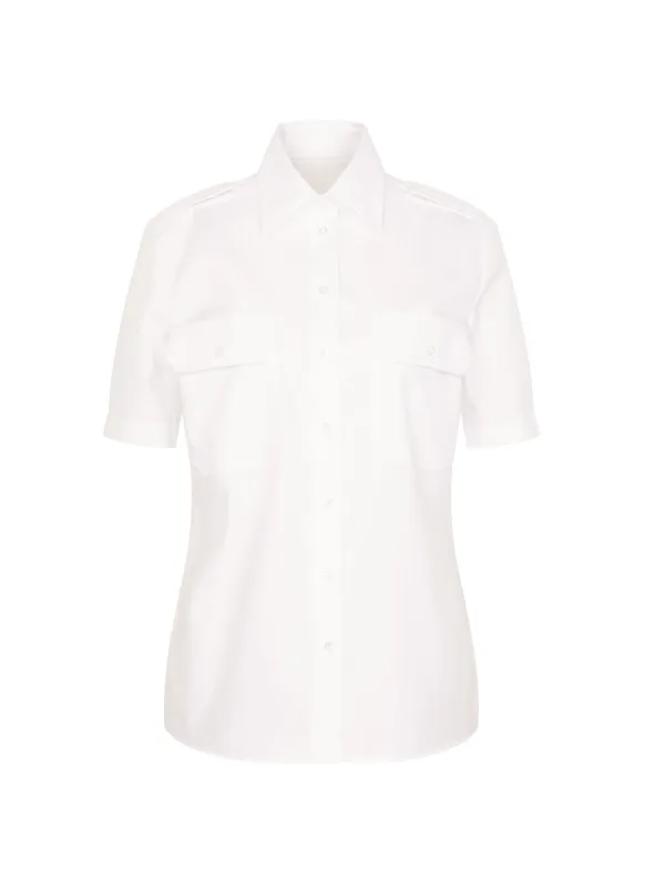 Blouse type: Klassieke blouse; Design: Gevoerde zoom/rand, Knop placket, Borstzak; Materiaal: Katoen; Motief: Effen; Kraag: Kentkraag; Extra's: Op staal naden; Pasvorm: Slanke pasvorm; Armlengte: Halve mouw; Lengte: Normale lengte
