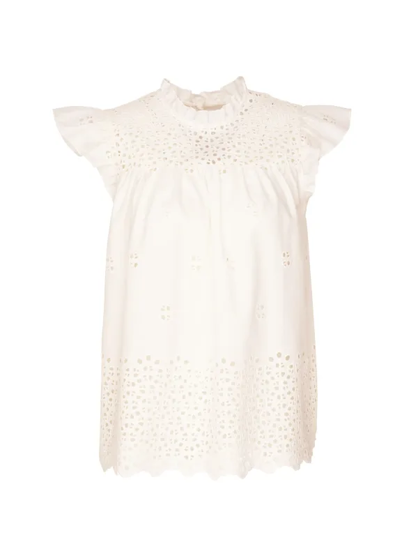 Blouse type: Blouseshirt; Design: Gefranjerde zoom; Materiaal: Katoen; Extra's: Licht transparant; Pasvorm: Normale pasvorm; Armlengte: Mouwloos; Lengte: Normale lengte