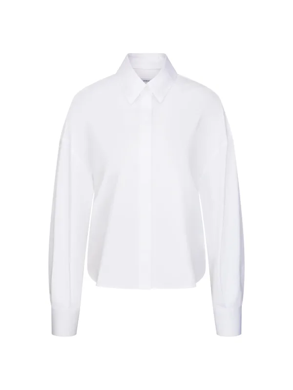 Blouse type: Klassieke blouse; Design: Gevoerde zoom/rand, Ronde zoom; Materiaal: Katoen; Motief: Effen; Extra's: Op staal naden; Pasvorm: Losse pasvorm; Armlengte: Lange mouw; Lengte: Normale lengte