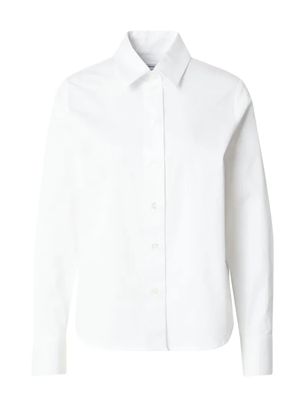 Blouse type: Klassieke blouse; Design: 2-knoops manchetten, Gevoerde zoom/rand, Ronde zoom; Type sluiting: Knoopsluiting; Materiaal: Katoen; Motief: Effen; Kraag: Kentkraag; Extra's: Op staal naden, Voelt zacht aan; Pasvorm: Losse pasvorm; Armlengte: Lange mouw; Lengte: Normale lengte