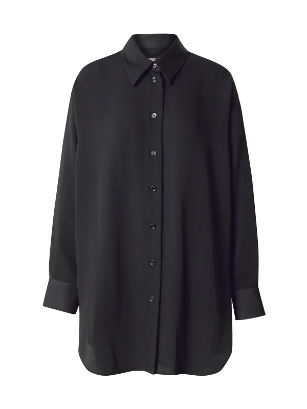 Blouse type: Klassieke blouse; Design: 2-knoops manchetten, Gevoerde zoom/rand, Knop placket, Rugplooi, Ronde zoom; Type sluiting: Knoopsluiting; Motief: Effen; Kraag: Kentkraag; Details: Plooien; Extra's: Parelmoer knoppen, Op staal naden, Gladde stof; Pasvorm: Wijde pasvorm; Armlengte: Lange mouw; Lengte: Lange pasvorm