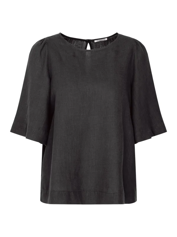 Blouse type: Blouseshirt; Design: Gevoerde zoom/rand, Keyholesluiting; Materiaal: Linnen; Motief: Effen; Kraag: Zonder kraag; Extra's: Op staal naden, Huidvriendelijk materiaal; Pasvorm: Losse pasvorm; Armlengte: Halve mouw; Lengte: Normale lengte