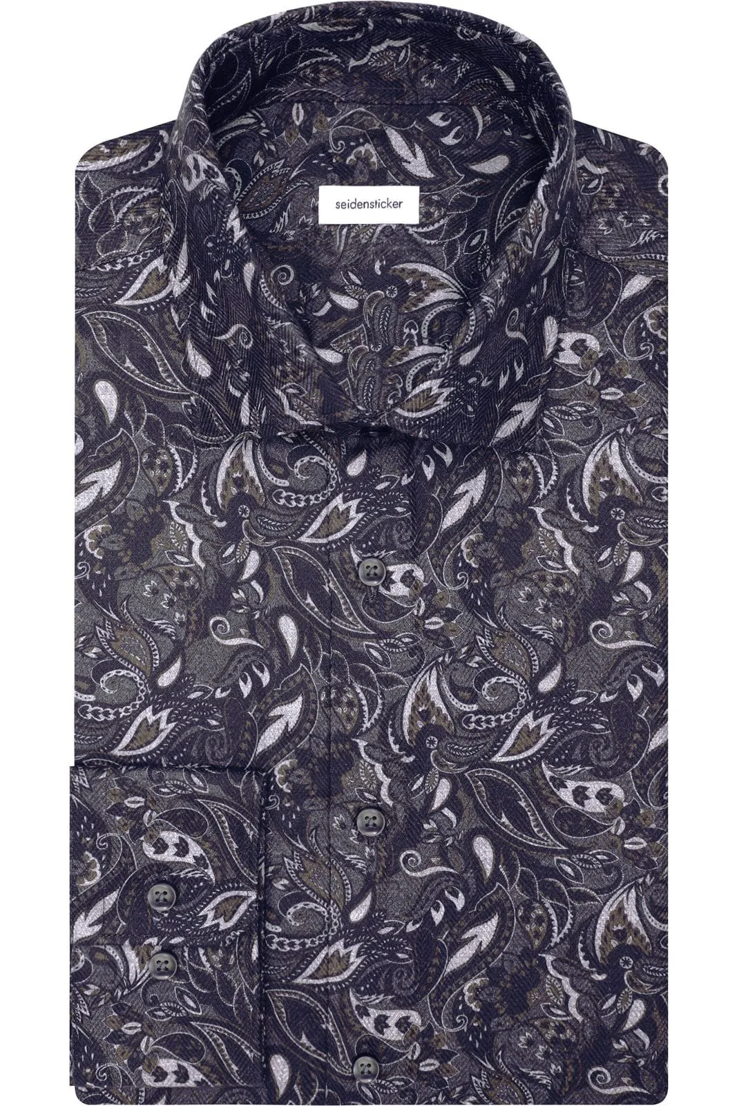 Seidensticker Flanellen Overhemd grijs, Bloemen