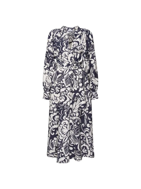 Design: 2-knoops manchetten, Taille met trekkoord, Rugplooi, Tailleriem, Elastische inserts; Type sluiting: Slip; Materiaal: Viscose; Halstype: Uitgesneden hals; Motief: Bloemenprint; Details: Plooien; Extra's: All-over patroon, Op staal naden; Lengte: 7/8 lengte; Pasvorm: Normale pasvorm; Armlengte: Lange mouw