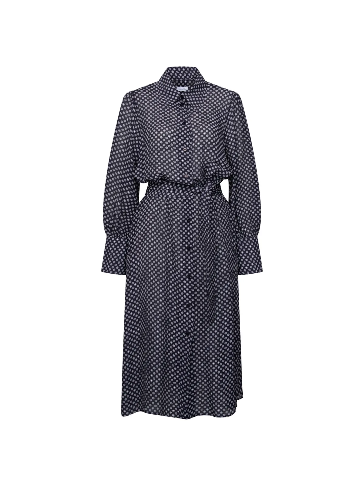 Design: Gevoerde zoom/rand, Tailleriem; Type sluiting: Knoopsluiting; Materiaal: Viscose; Halstype: Polokraag; Motief: Gestippeld; Extra's: All-over patroon; Lengte: 3/4 lengte; Pasvorm: Normale pasvorm; Armlengte: Lange mouw