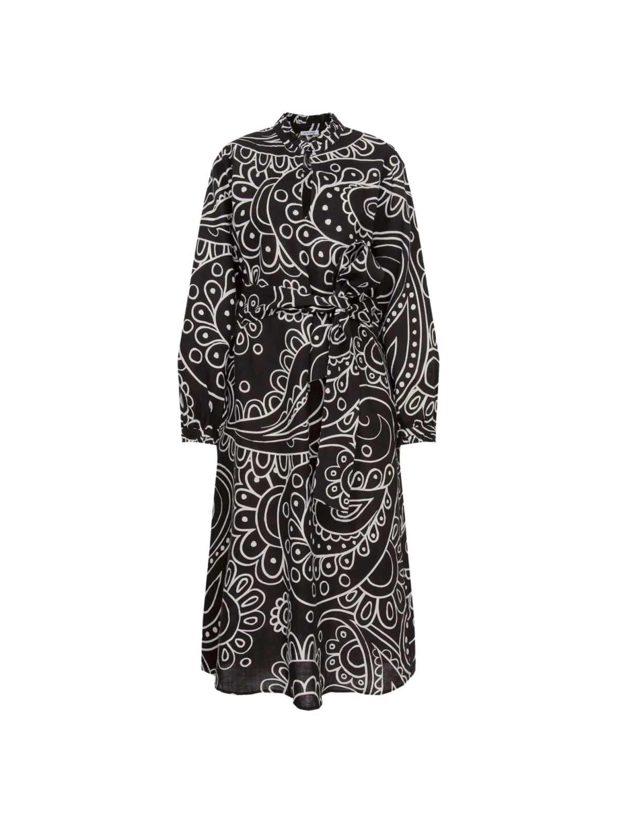 Design: Om te knopen/binden; Materiaal: Linnen; Halstype: Ronde hals; Motief: Paisley; Details: Cut-outs; Extra's: All-over patroon; Lengte: 3/4 lengte; Pasvorm: Normale pasvorm; Armlengte: Lange mouw