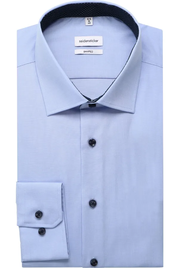 Seidensticker shaped fit overhemd mouwlengte 7 popeline blauw Strijkvrij Boord