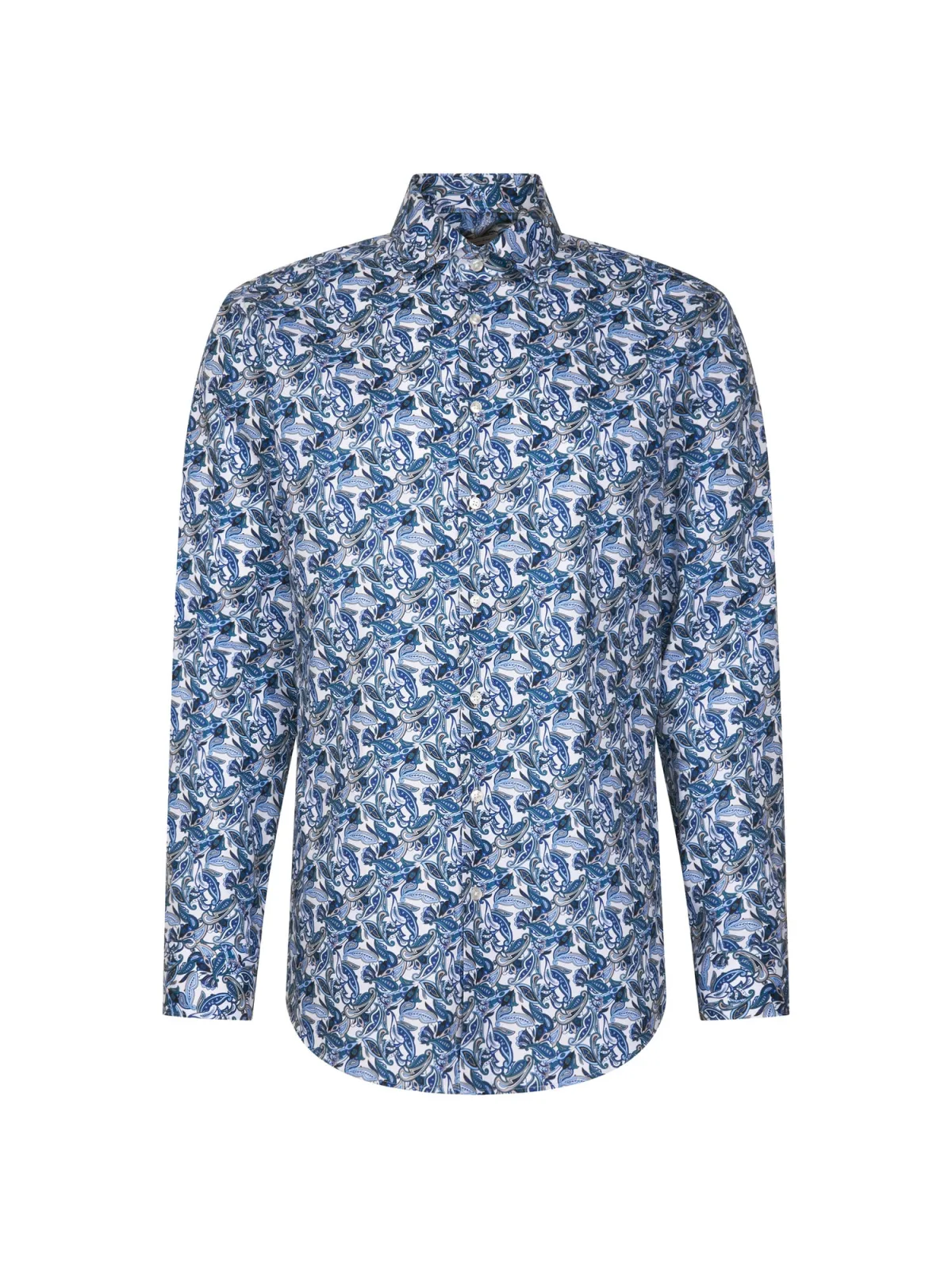 SEIDENSTICKER Overhemd ‘Schwarze Rose ‘ blauw / wit