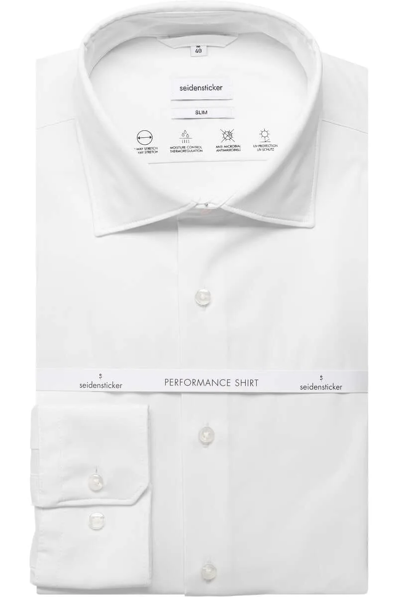 Seidensticker Performance Slim Fit Overhemd wit, Effen