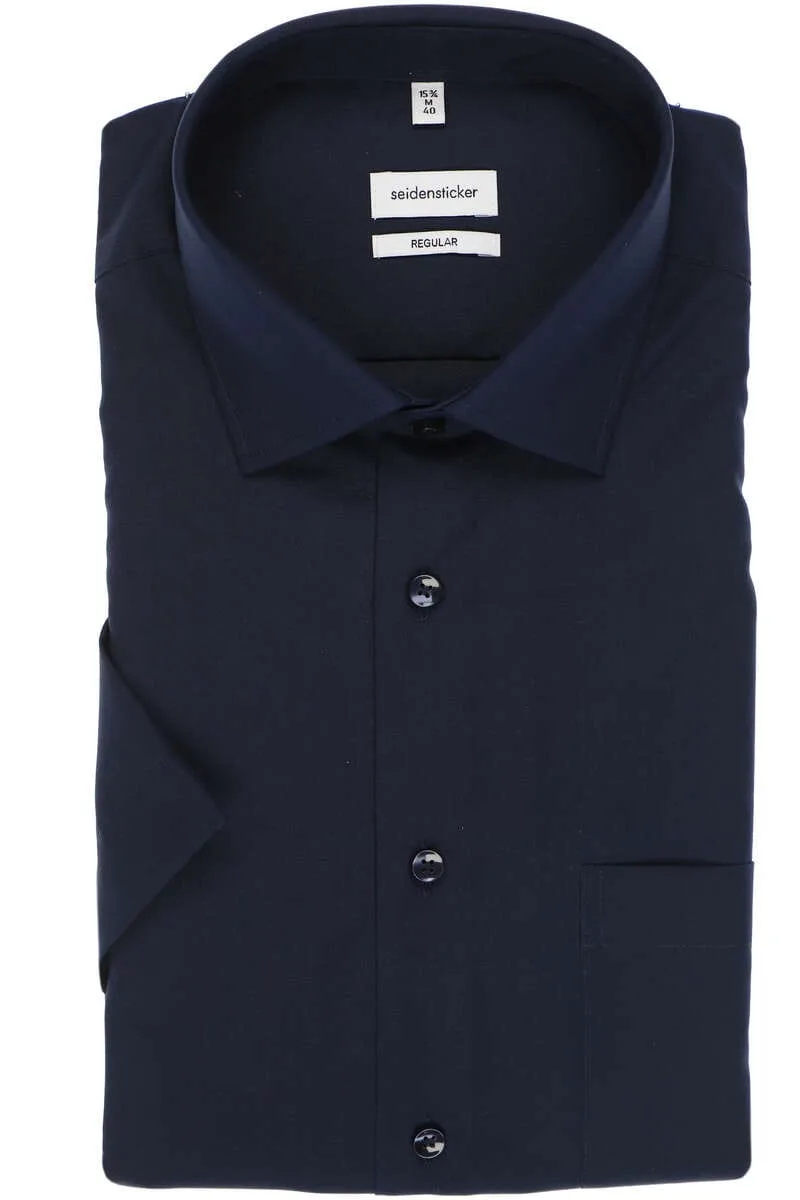 Seidensticker regular fit overhemd korte mouw donkerblauw Strijkvrij Boord