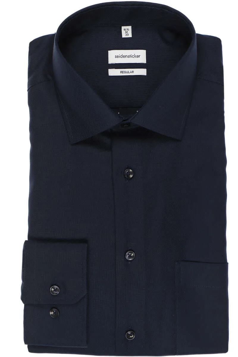 Seidensticker regular fit overhemd donkerblauw structuur Strijkvrij Boord