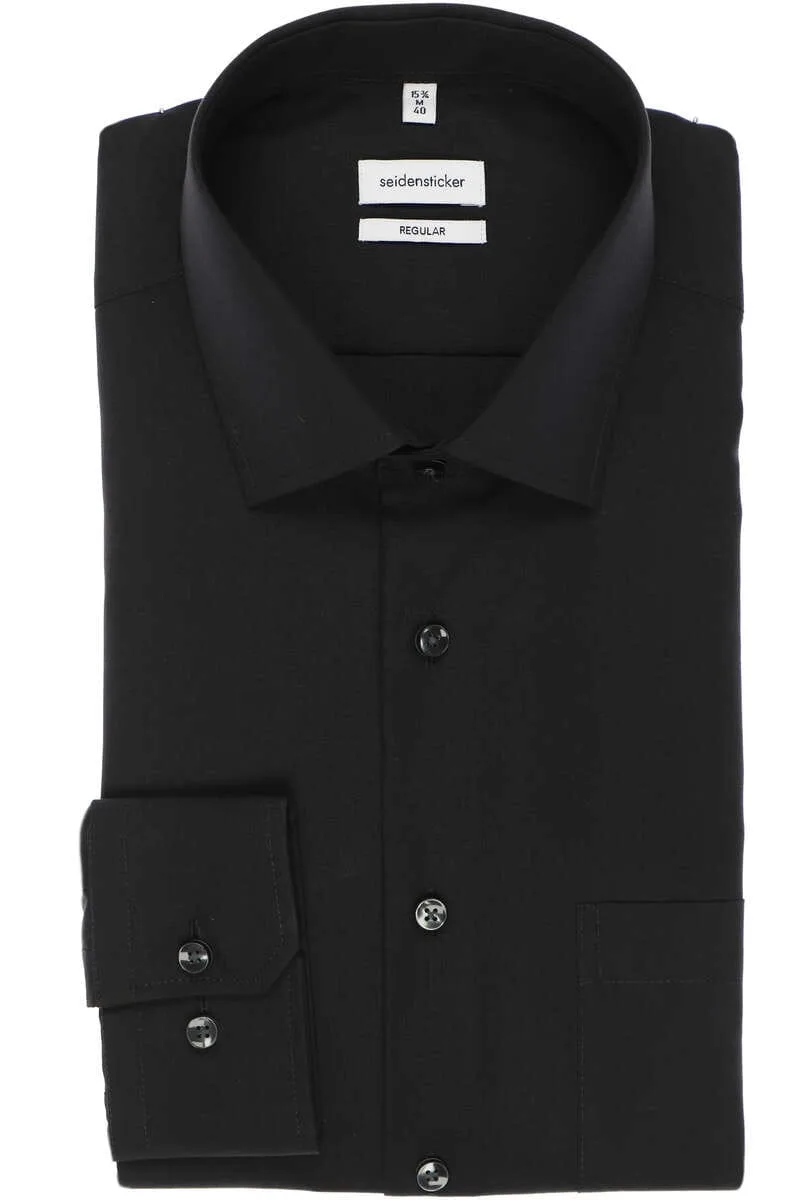 Seidensticker Regular Fit Overhemd zwart, Effen