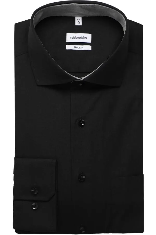 Seidensticker Regular Fit Overhemd zwart, Effen Prijzen