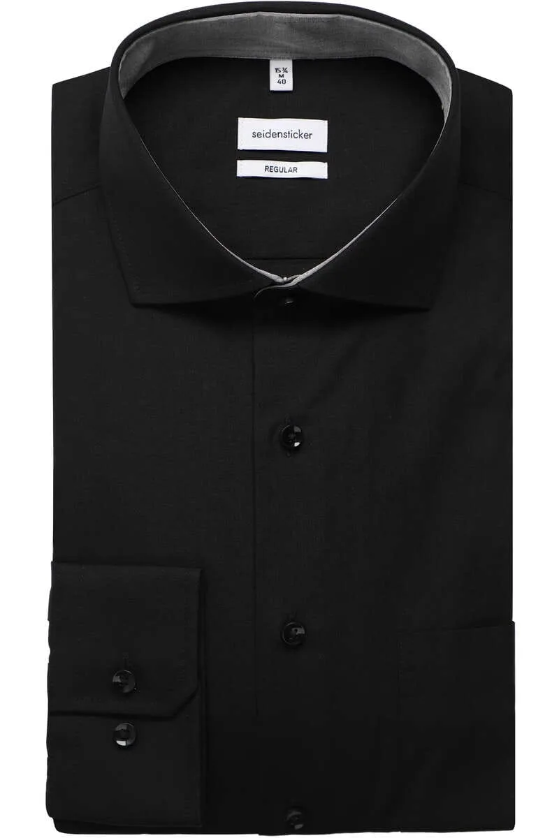 Seidensticker Regular Fit Overhemd zwart, Effen