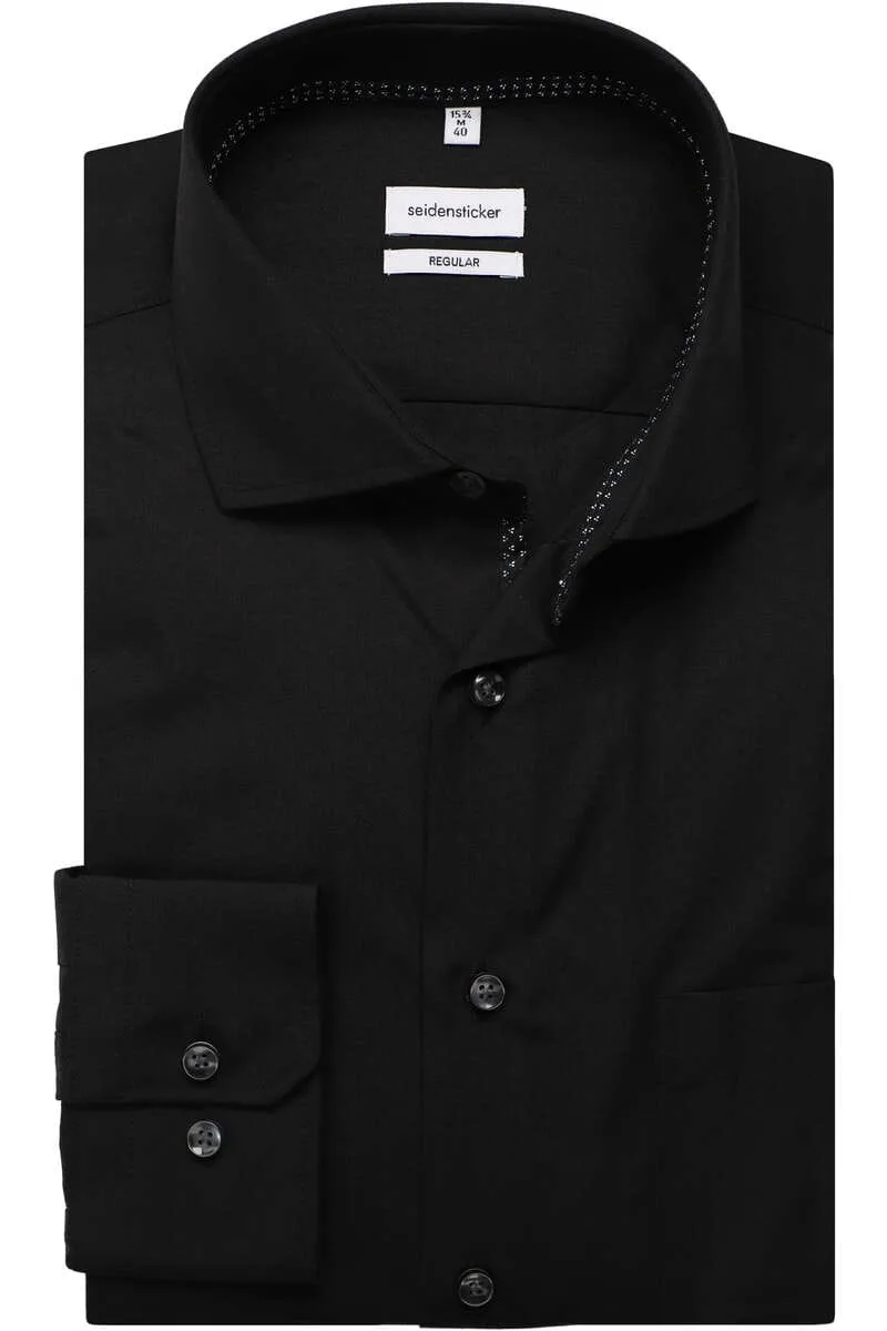 Seidensticker Regular Fit Overhemd zwart, Effen