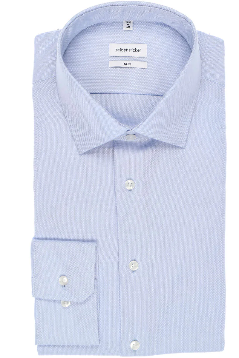 Seidensticker slim fit overhemd lichtblauw structuur Strijkvrij Boord
