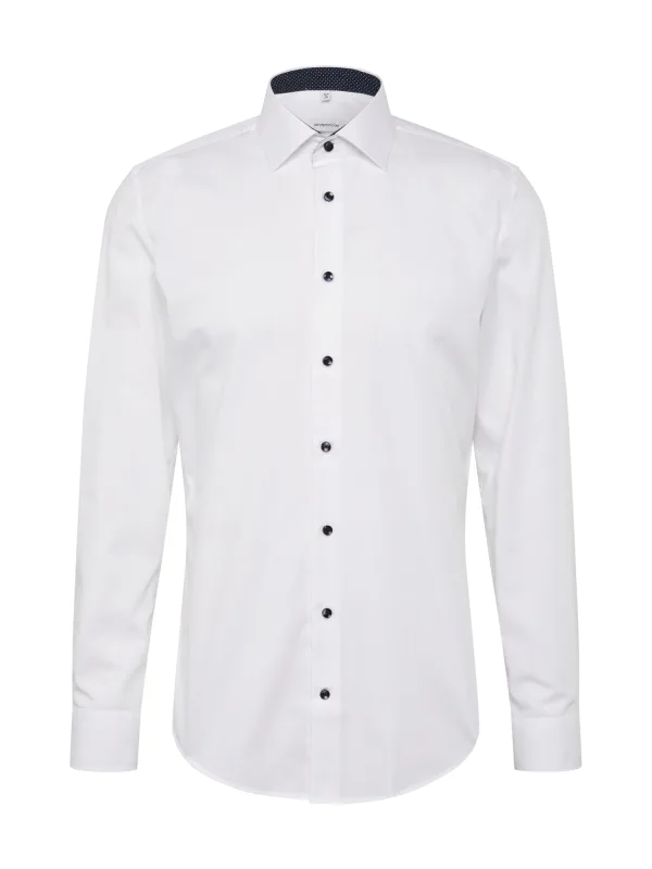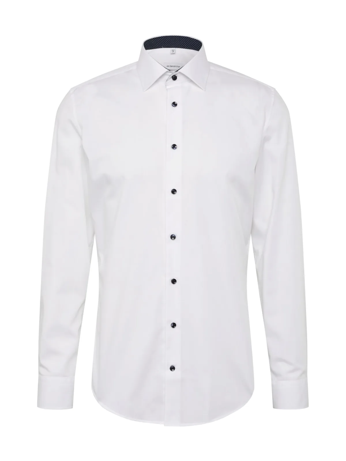 Seidensticker slim fit overhemd – wit (gestipt contrast) – Strijkvrij – Boord