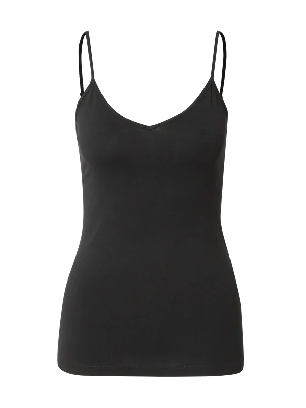 Design: Gevoerde zoom/rand, Rechte zoom, Diepe snit/decolleté; Materiaal: Jersey; Halstype: V-hals; Motief: Effen; Soort bandjes: Spaghettibandjes; Extra's: Voelt zacht aan, Huidvriendelijk materiaal; Pasvorm: Aansluitende pasvorm; Armlengte: Mouwloos; Lengte: Normale lengte