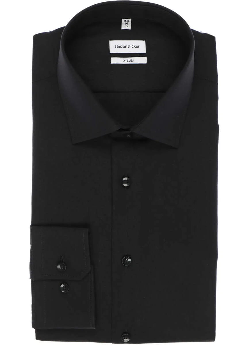 Seidensticker X-Slim Overhemd zwart, Effen