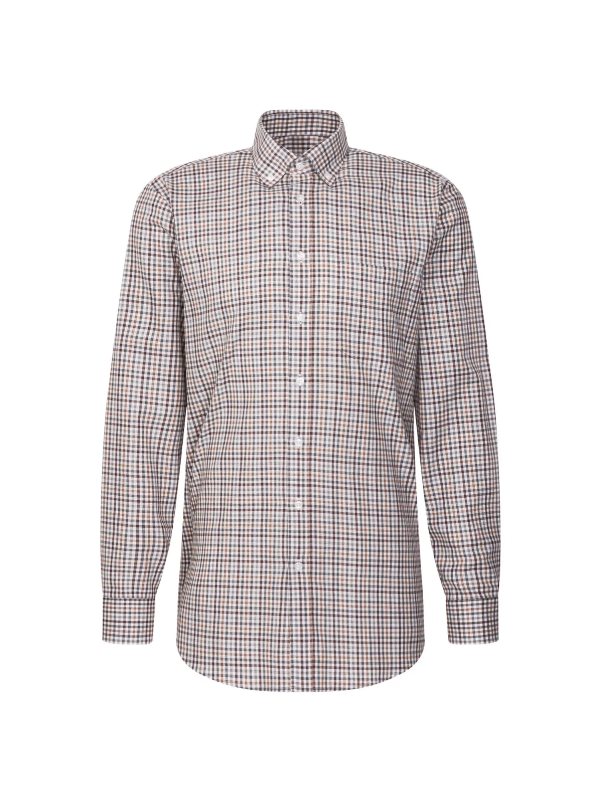 Design: Knop sluiting; Materiaal: Katoen; Motief: Geruit; Kraag: Kentkraag; Extra's: All-over patroon; Pasvorm: Regular fit; Armlengte: Lange mouw