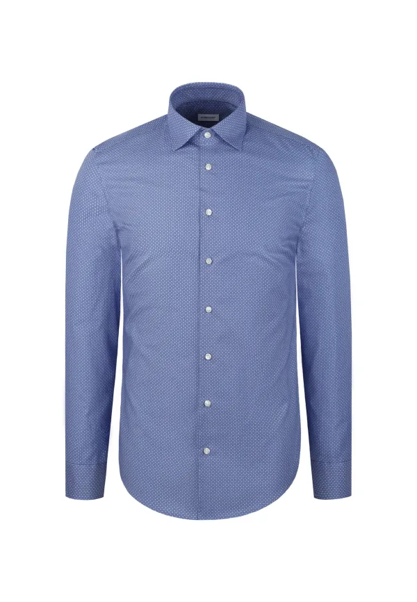 Design: Schuine manchetten; Type sluiting: Knoopsluiting; Materiaal: Katoen; Motief: Gestippeld; Kraag: Kentkraag; Extra's: All-over patroon; Pasvorm: Slim fit; Armlengte: Lange mouw
