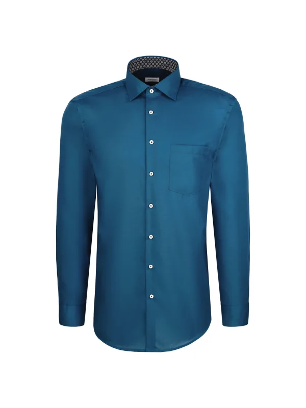 Lange mouw (normaal), 100% Katoen, Modern Kentkraag Enkel manchet, Poplin, Met borstzak, patch in kraag / manchet, 40 graden