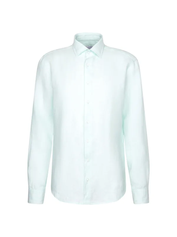 Design: 1-knoops manchetten; Type sluiting: Knoopsluiting; Materiaal: Linnen; Motief: Effen; Kraag: Kentkraag; Extra's: Op staal naden; Pasvorm: Regular fit; Armlengte: Lange mouw