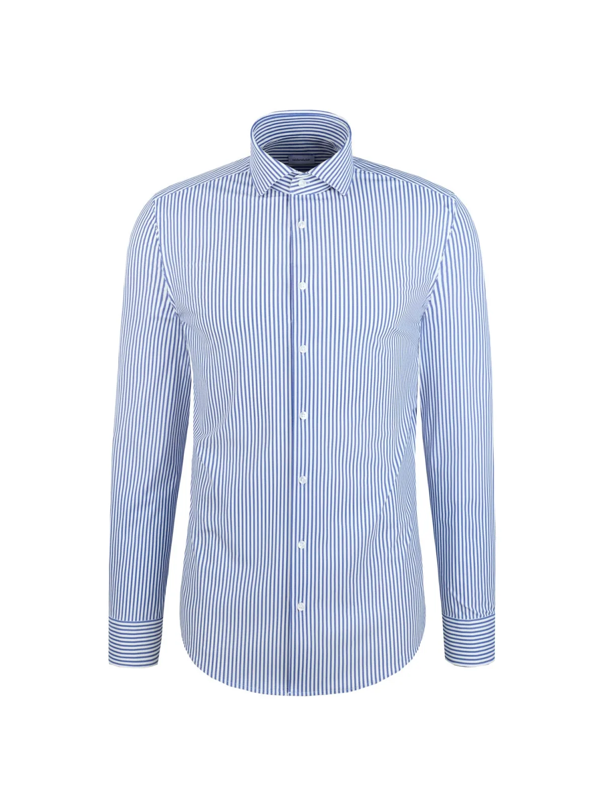 Design: Turn-down kraag; Motief: Gestreept; Kraag: Kentkraag; Extra's: All-over patroon; Pasvorm: Slim fit; Armlengte: Lange mouw