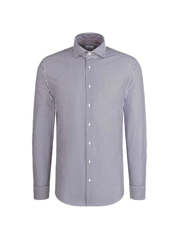 Design: Gevoerde zoom/rand, Placket; Type sluiting: Knoopsluiting; Materiaal: Katoen; Motief: Gestreept; Kraag: Kentkraag; Extra's: All-over patroon; Pasvorm: Slim fit; Armlengte: Lange mouw