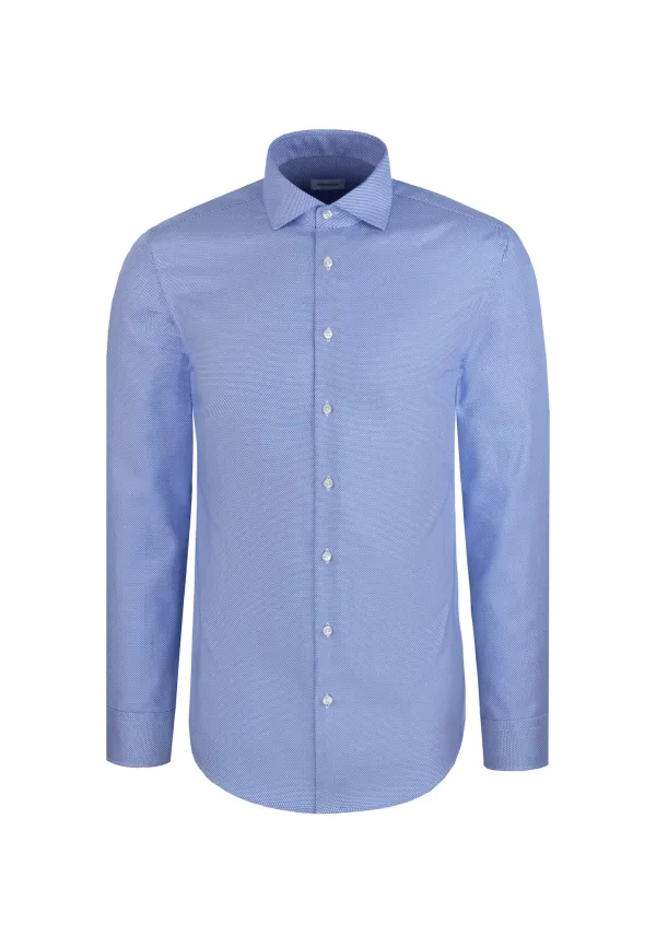 Design: Knop placket; Type sluiting: Knoopsluiting; Materiaal: Katoen; Kraag: Kentkraag; Extra's: Gestructureerd oppervlak; Pasvorm: Slim fit; Armlengte: Lange mouw