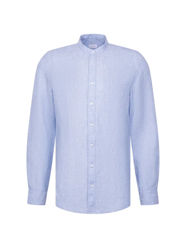 slim fit overhemd van linnen met opstaande kraag model 'Mandarin'